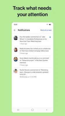 Airtable为您解锁前所未有的信息组织方式,将繁琐的数据追踪变得轻而易举。在您的掌上设备,每一条数据记录都以直观的卡片形式呈现,轻点即可查看或编辑,尽享移动操控的便捷。而在网页端,Airtable则变身为功能强大的电子表格界面,让您能够以熟悉的布局,高效地管理和编辑海量数据。它将您的信息管理提升至一个全新的维度。