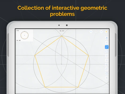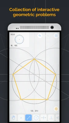 Euclidea 构建的所有图形都具备高度的动态性。您可以自由拖动点、线、半径等元素,实时调整角度和尺寸,并轻松进行缩放与平移,这不仅增强了互动体验,更让您能深入洞察几何元素间的复杂关系,探索各种可能性,并精确分析潜在错误。此外,无需担心精度问题,Euclidea 具备自动精确捕捉功能,能够智能吸附点、线和圆,确保您的构造始终完美无瑕。特别的"探索"模式能预先展示目标图形,为您提供解决思路。而随着您的进步,所积累的工具库将成为应对未来挑战的关键。许多难题不止一种解法,鼓励您尝试不同路径,发掘更多乐趣,使每一次几何探索都充满新意。