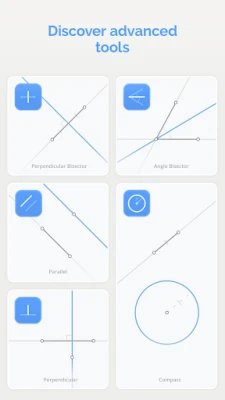 在 Euclidea 中,旅程从简单的几何原理启程,逐步引导您掌握基础知识。随着您能力的提升,游戏将解锁更具挑战性的谜题,例如内外切线、正多边形构造等,每个都旨在磨砺您的思维。您通过解决前一个关卡来解锁新的挑战,并努力争取所有星级评价,以完成整个游戏。若希望体验更自由的探索,亦可选择内购来解除此限制。值得一提的是,当您掌握了某些重要的构造技巧——比如角平分线或非折叠圆规——它们会自动转化为快捷工具,整合到 Euclidea 的操作界面中,极大地提升效率,并让您的绘图更加清晰流畅。