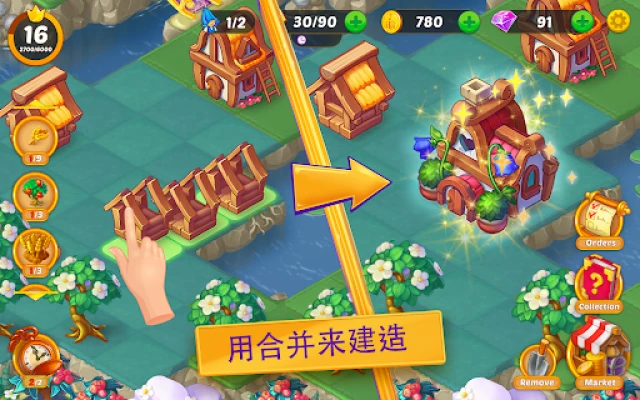 《合并童话国》带你探索奇幻土地,每次合并发现都让童话世界更广阔、更精彩。沉浸在这款融合了合并与益智建造的独特游戏中,展开你的创意冒险。