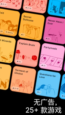 Social Gamebox 的设计理念是极致的便捷与灵活。只需一部手机,即可作为游戏中心,通过屏幕共享或传递手机,让所有在场玩家共同参与。即便是远隔千里,也能通过便捷的在线模式加入。无论您是在野外露营、飞机旅途,还是身处无网络区域,Social Gamebox 都能完全离线运行,确保乐趣永不中断。从第一次约会到与亲朋好友的温馨之夜,从家庭派对到酒吧小聚,Social Gamebox 都是您的完美伴侣。为了提供更深度的体验,应用内还设有一系列进阶内容,包括专属游戏类别、拓展功能及所有游戏的完整内容,让每一次互动都充满新意与惊喜。